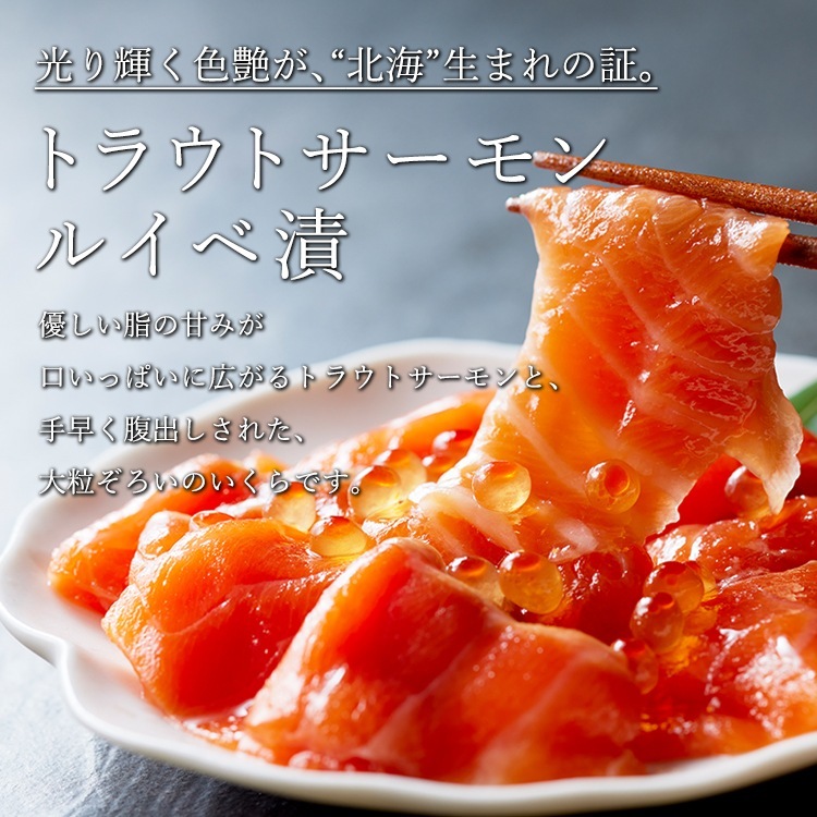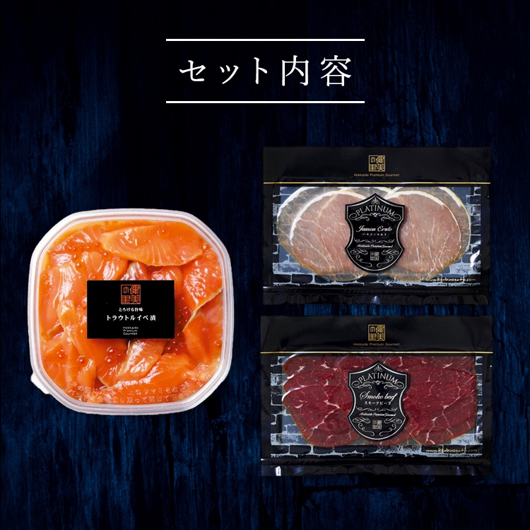 【HOKKAIDO PREMIUM GIFT】トラウトサーモンルイベ漬&生ハム C [MG113]【冷凍便】