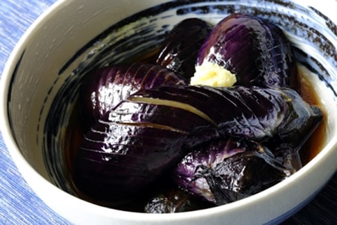 ① 茄子は縦に2等分して皮にかくし包丁を入れ水にさらし、アク抜きをしておく。